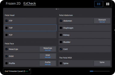 5D CNS+TM využívá inteligentní navigaci, která poskytuje 6 měření ze 3 příčných řezů fetálního mozku, aby se zvýšila reprodukovatelnost měření a zjednodušil se pracovní postup.
